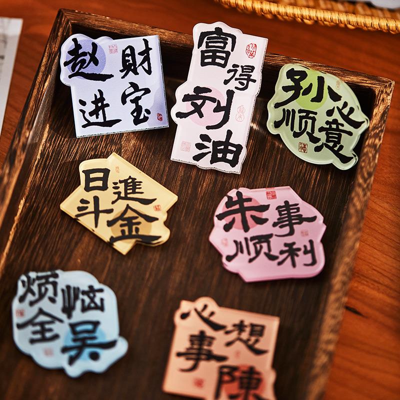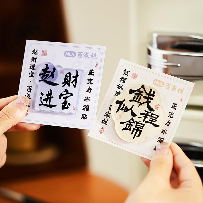 百家姓文创亚克力姓氏冰箱贴2025新款中国风书法谐音祝福文字姓氏磁性贴定制创意家居DIY磁吸装饰品贴小礼物
