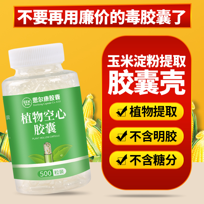 胶囊壳装药可食用纯植物玉米淀粉空心糯米胶囊皮0#号可装粉手动