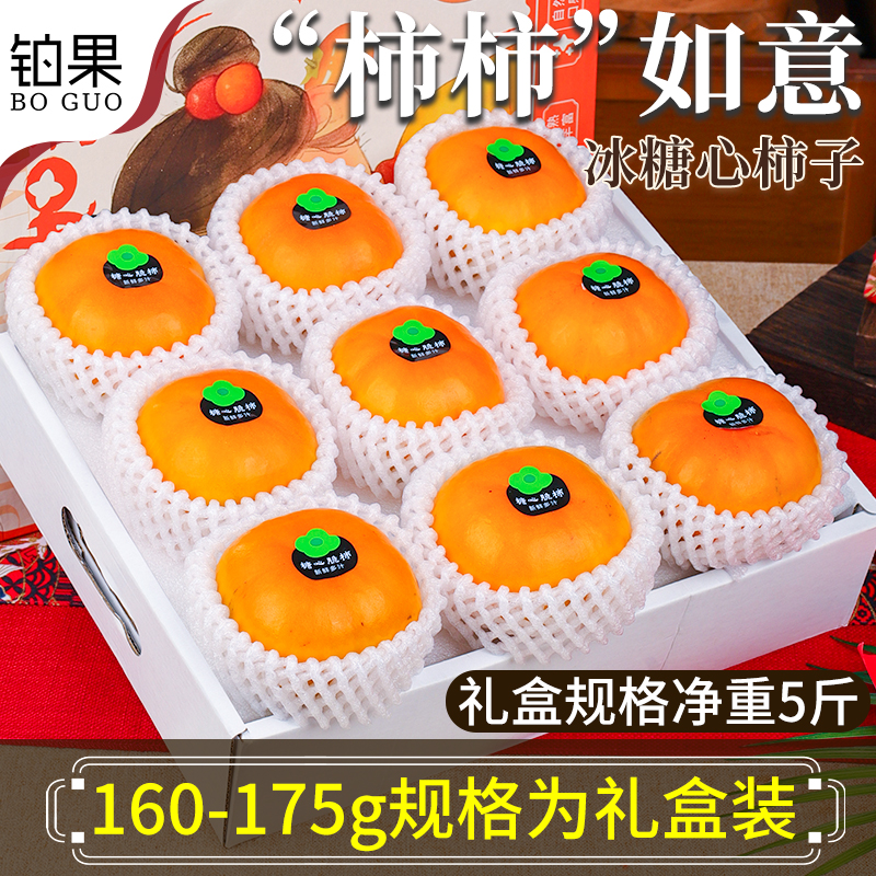 正宗富平柿子新鲜大尖柿硬5斤应季软甜水果柿子可挂柿饼整箱包邮