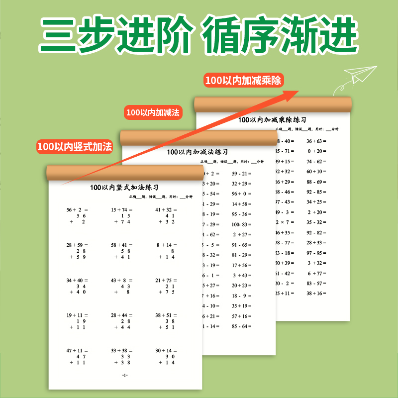 一年级二年级加减乘除混合运算100以内加减混合口算题卡练习本数学计算题强化训练小学生竖式运算口算天天练