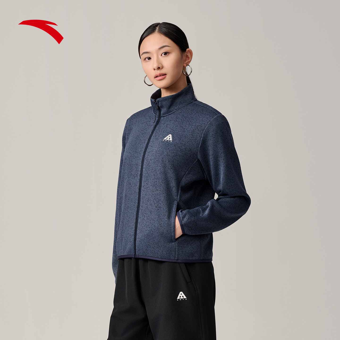 安踏火壳粗针抓绒衣丨大地之壳3.0女秋冬新款立领外套运动上衣