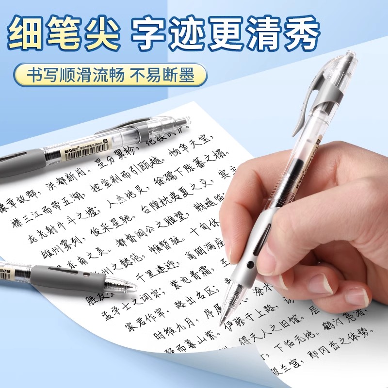 晨光0.38细笔划中性笔按动子弹头笔极细手账笔财会会计专用圆珠笔水笔签字笔学生做笔记黑笔教室批注AGP02310