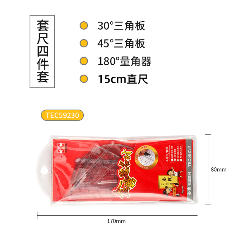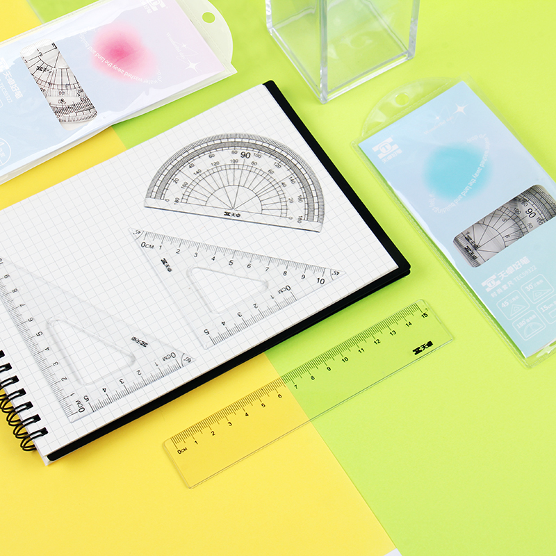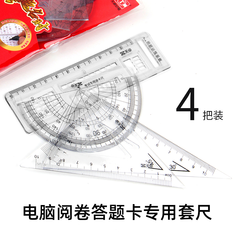 天卓涂卡专用直尺15厘米 学生套尺四件套 两种三角板加量角器刻度清晰准确透明度好 不易断学习考试用具59230