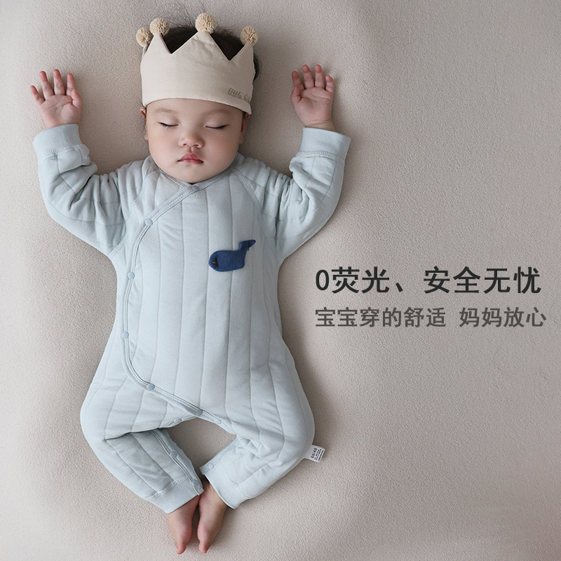 婧麒新生儿婴儿衣服秋冬夹棉满月纯棉初生宝宝秋装连体衣a类爬服