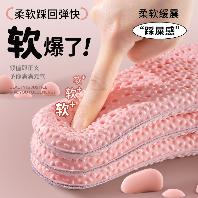 踩屎感鞋垫久站不累软底夏季足弓支撑运动气垫减震吸汗防臭男女款