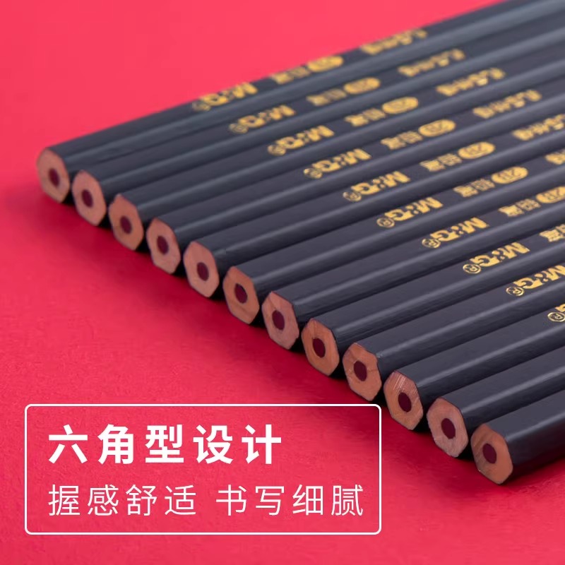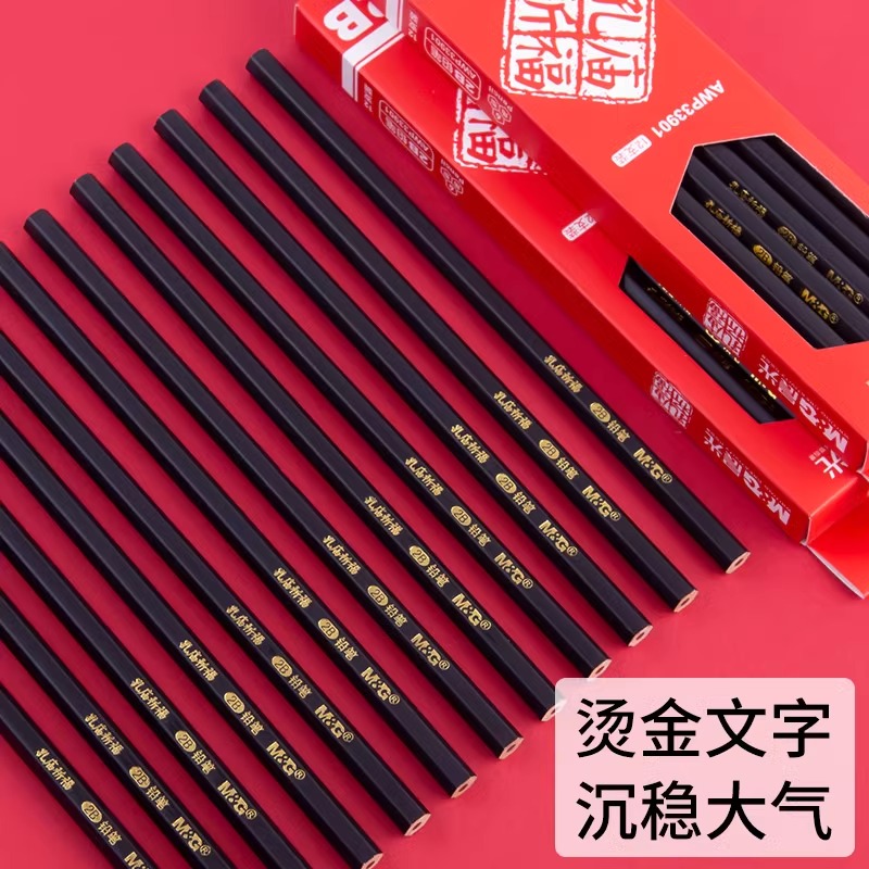 晨光2B铅笔孔庙祈福系列黑色笔杆学生用六角杆铅笔木杆考试铅笔