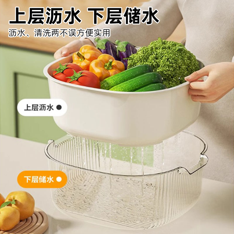 双层洗菜盆沥水篮白色6件套大号中号小号