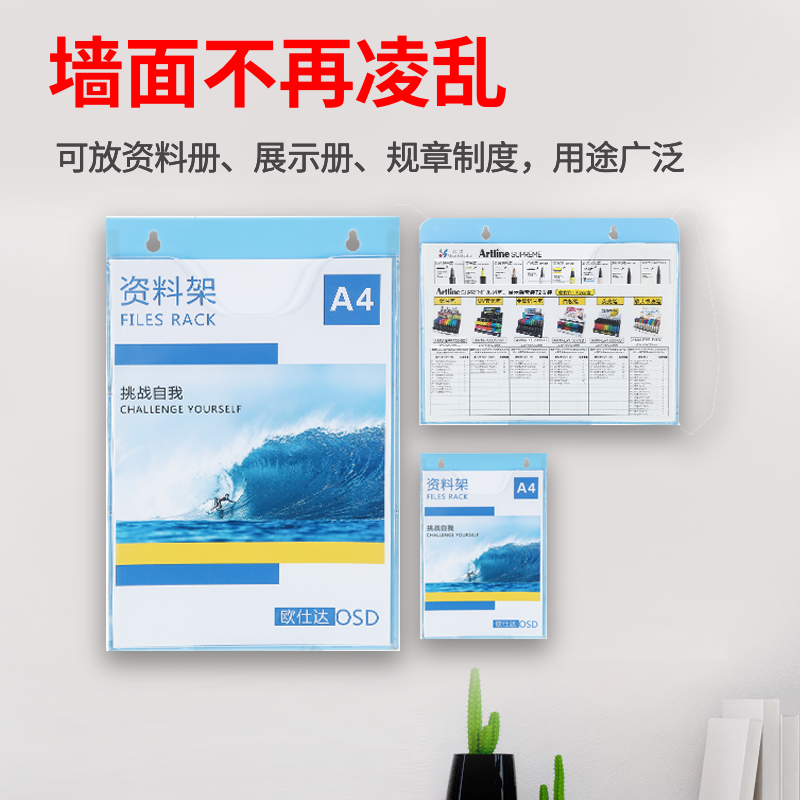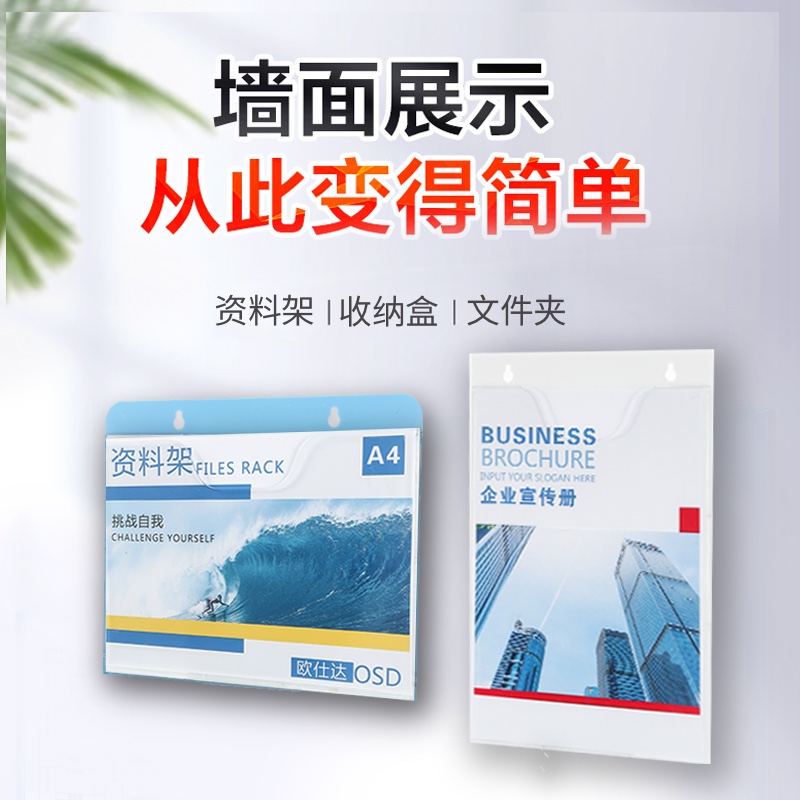 A4收纳文件夹壁挂宣传资料盒亚克力展示架墙面收纳盒a5a3插页透明资料架挂墙宣传架挂墙资料册