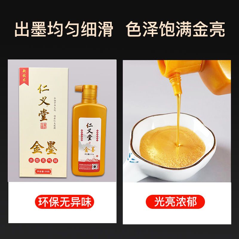 仁义堂金墨汁高档书法抄经墨液大瓶手写对联纸春联专用金色墨水汁