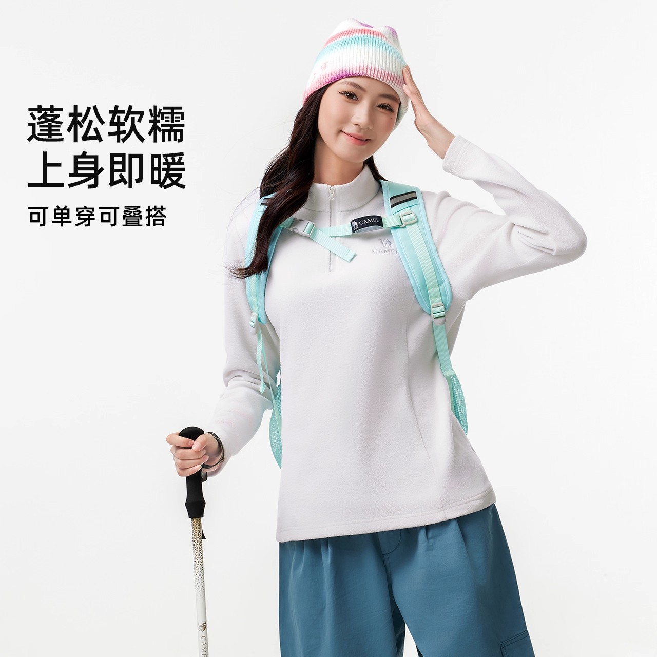骆驼户外抓绒衣女立领防风加热保暖抗静电冲锋衣内胆摇粒绒外套男