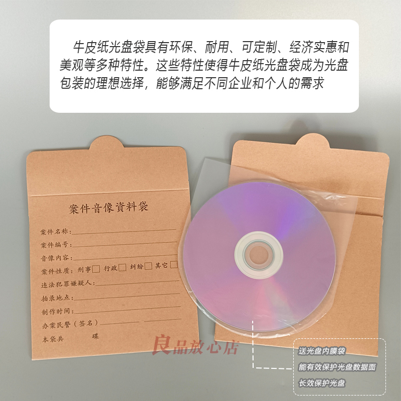 光盘袋视频证据袋CD/DVD收纳袋牛皮纸光碟袋文件档案袋音像资料袋