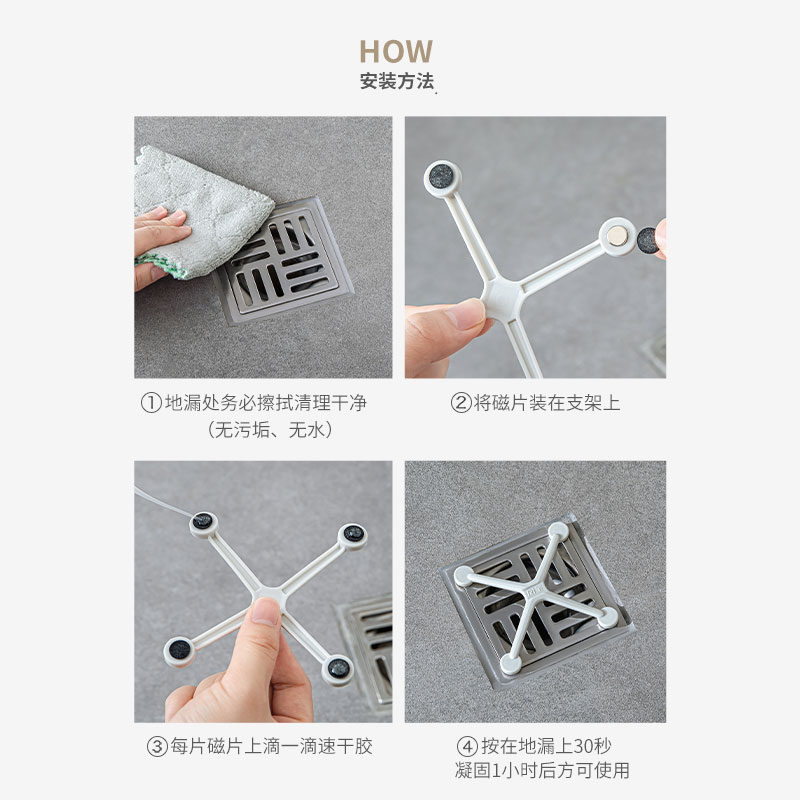 磁吸固定防虫防堵地漏贴支架浴室下水道拦发网卫生间一次性过滤网