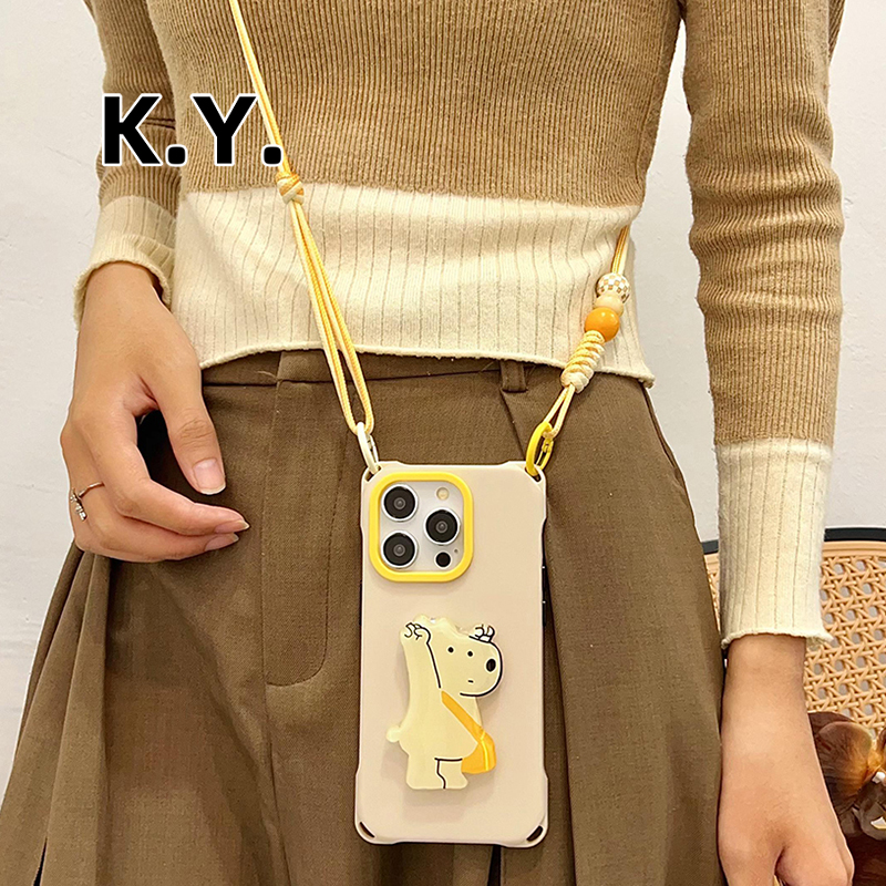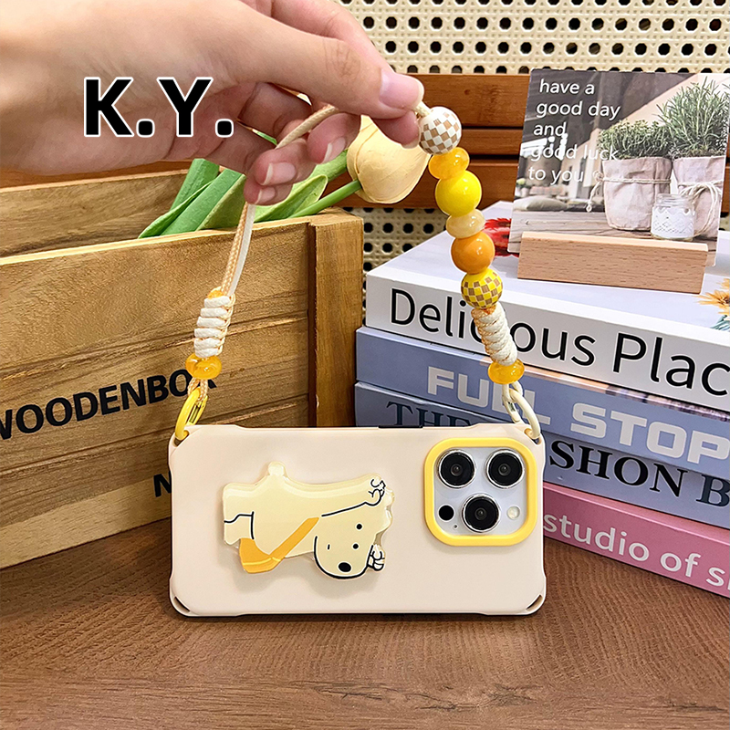 新款挂包小狗折叠支架手机壳带挂绳适用于iPhone16pro华为mate60/70手提斜挎背带Pura70四角开孔findx8防摔