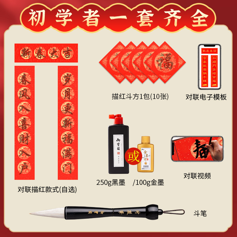 描红对联纸手写万年红春联纸套装2025年新款儿童临摹福字红纸七言写对联的专用纸自写空白斗方书法红色作品纸