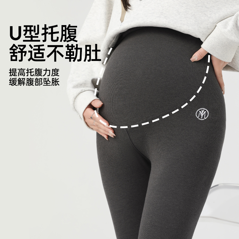 婧麒孕妇打底裤秋冬季外穿2025新款纯棉孕期不勒肚子长裤子孕妇装