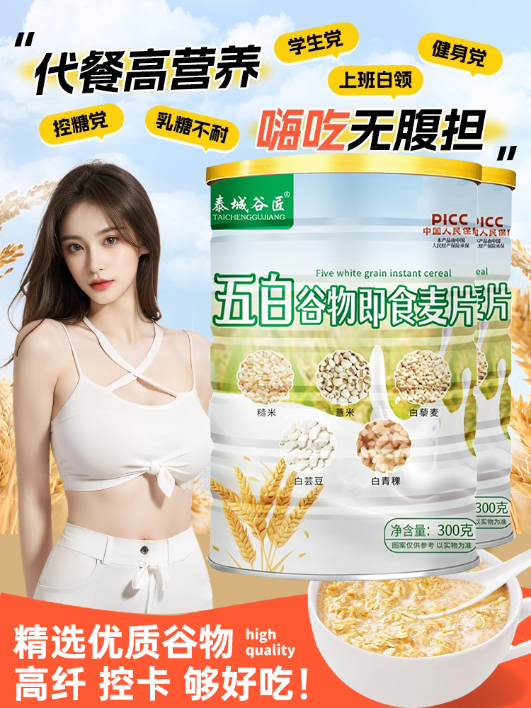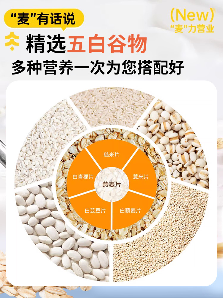 五白谷物即食麦片旗舰店早餐代餐饱腹食品官方正品即食燕麦片