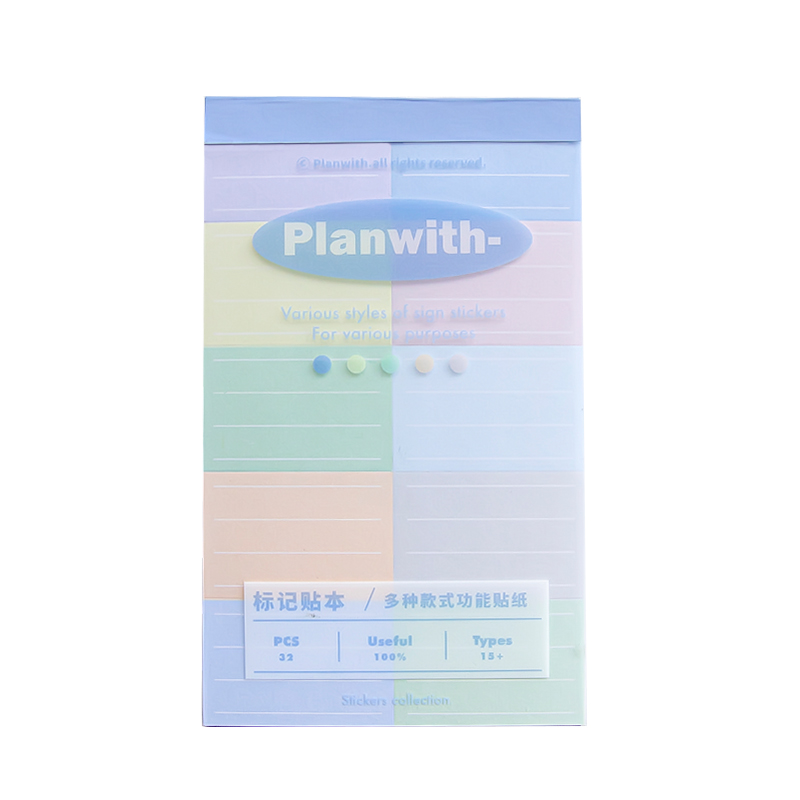 Planwith自粘标记贴本学生用笔记注释分类索引手账素材高颜值ins风封口贴多功能标记贴本内页样式丰富工作用