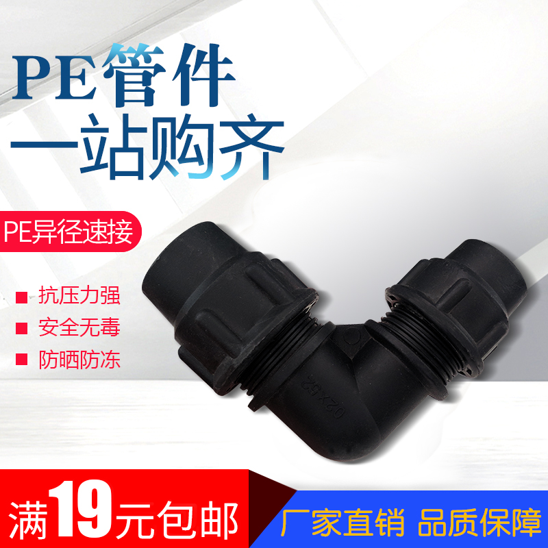 PE管异径快接弯接头 速接弯通20/25/32水管免热熔管材配件4分弯管