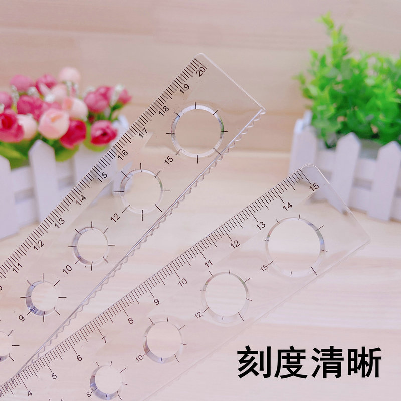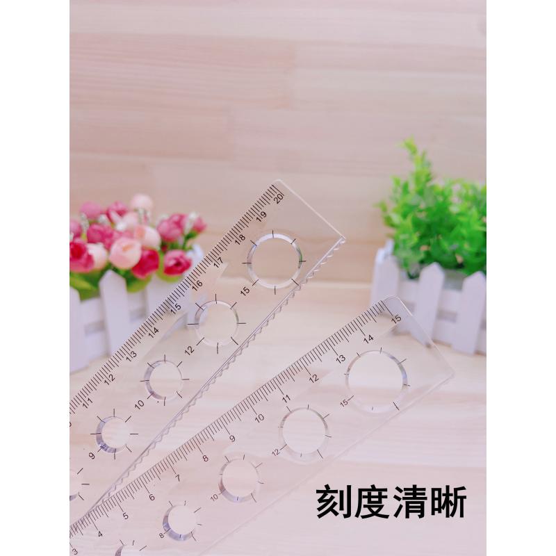 圆洞洞尺子小学生专用透明直尺带波浪线格尺多功能长尺儿童卡通塑料尺绘图测量刻度尺一二年级答题直尺子开学