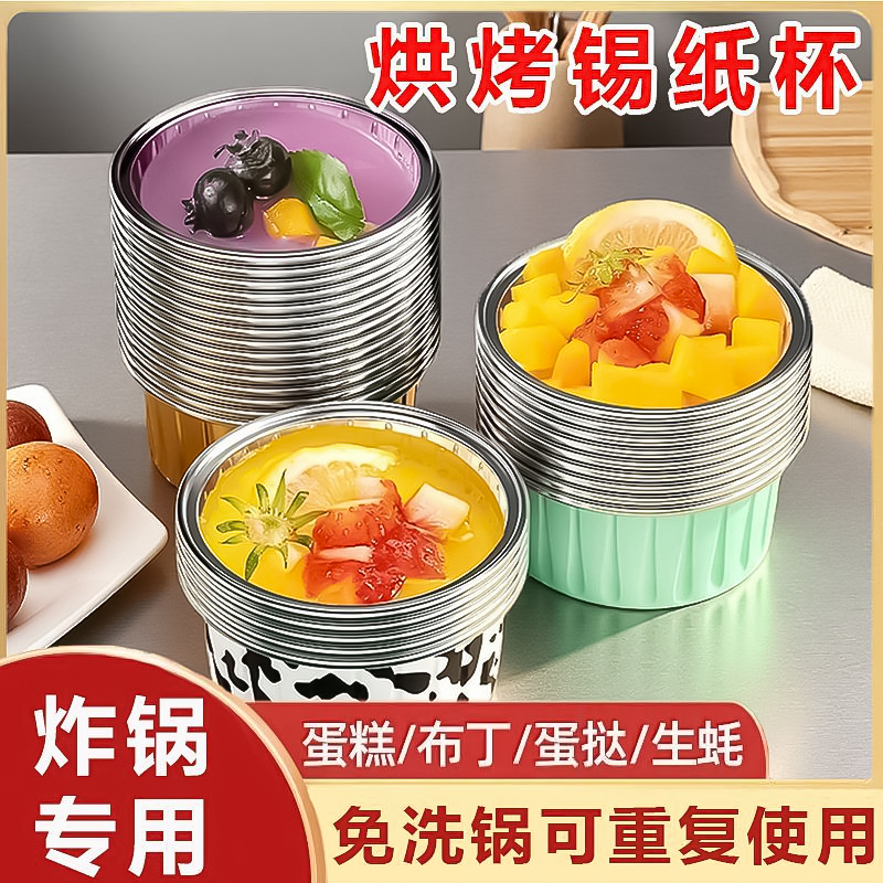 空气炸锅锡纸碗铝箔可重复家用烤箱蛋糕布丁烘焙模具小锡纸盒杯盘