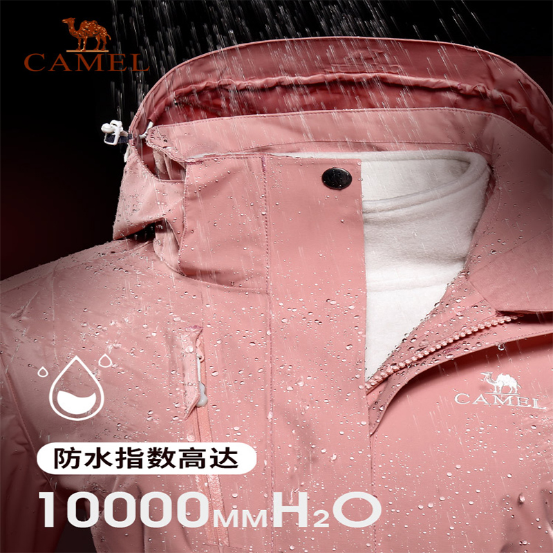 骆驼风暴冲锋衣女三合一工装款户外暴雨防水外套粉色旅游登山服男