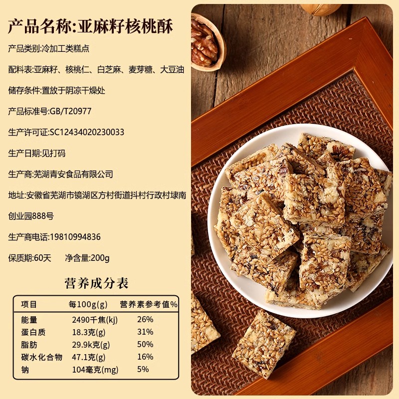 0亚麻籽核桃酥零食小吃特产官方旗舰店糕点核桃仁手工国货健康