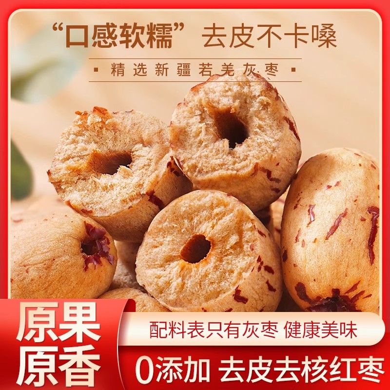 无核红枣新疆去核去皮若羌灰枣奶枣脱皮空心包粽子大红枣干货整箱