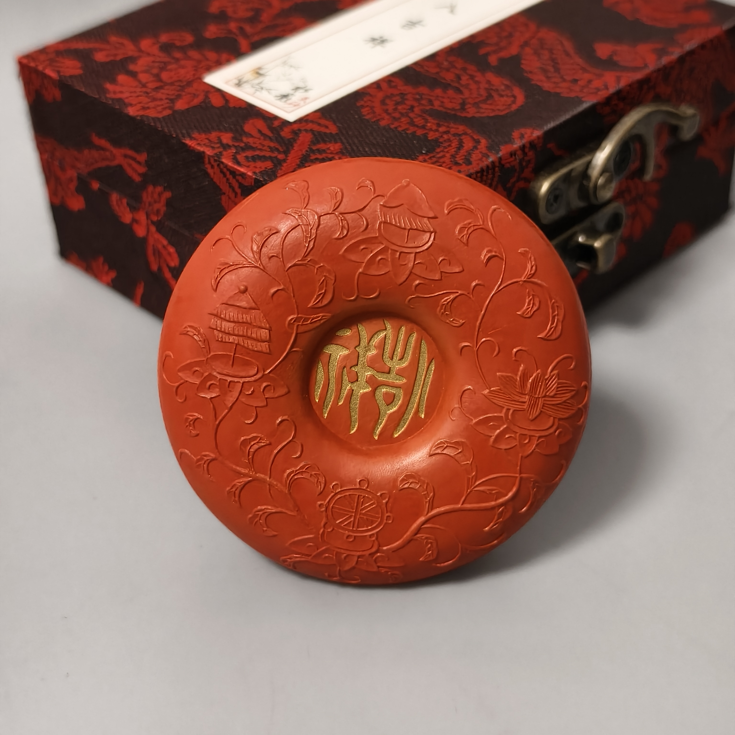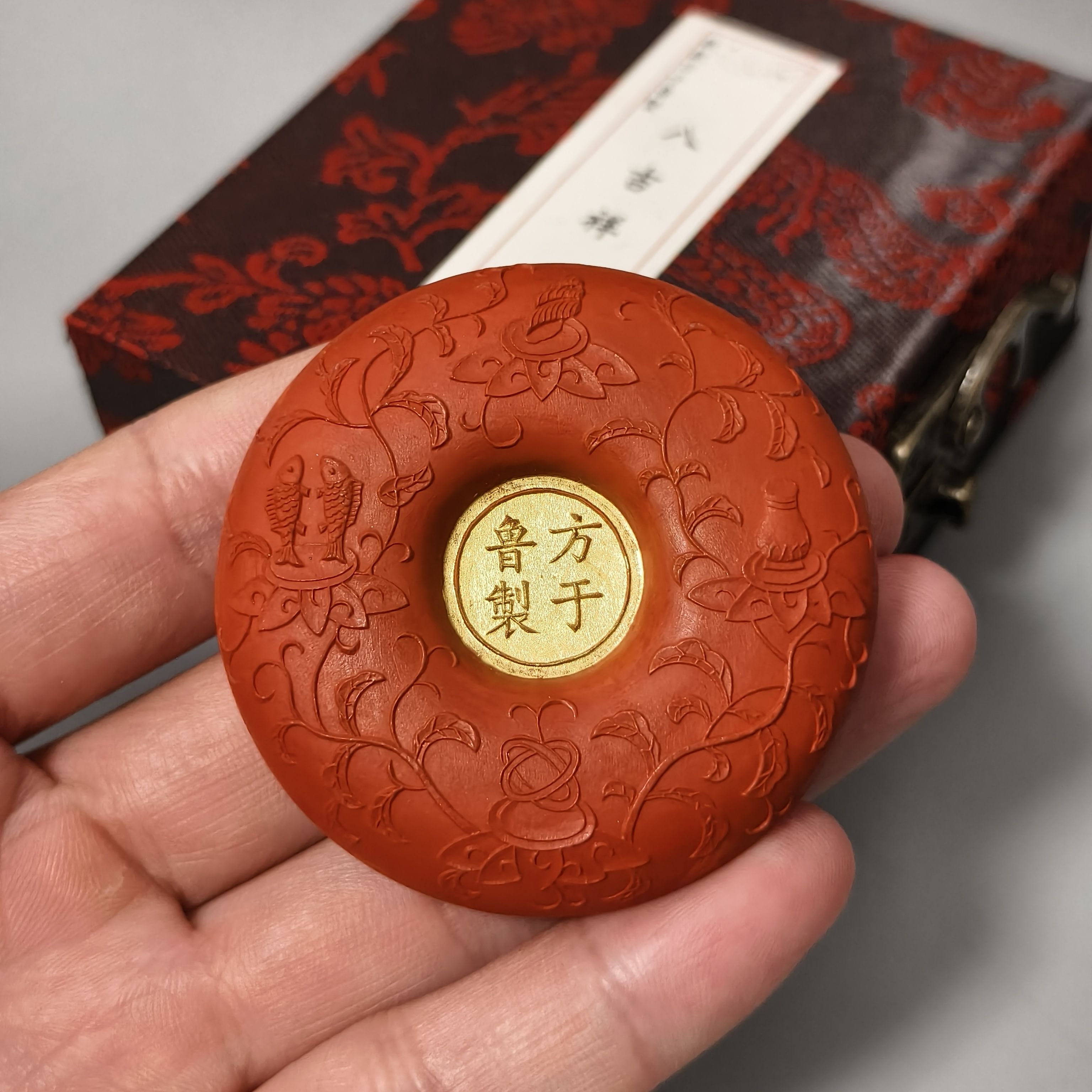 方于鲁原矿水飞朱砂墨条八吉祥抄经国画收藏摆件墨块