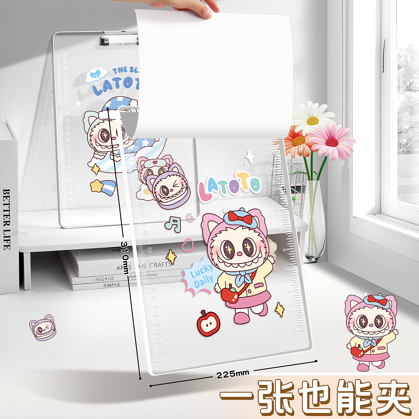 a4文件夹板夹写字板透明卡通可爱高颜值书写垫板小学生专用资料试卷夹加厚画画垫板硬板纸张固定收纳夹金属夹