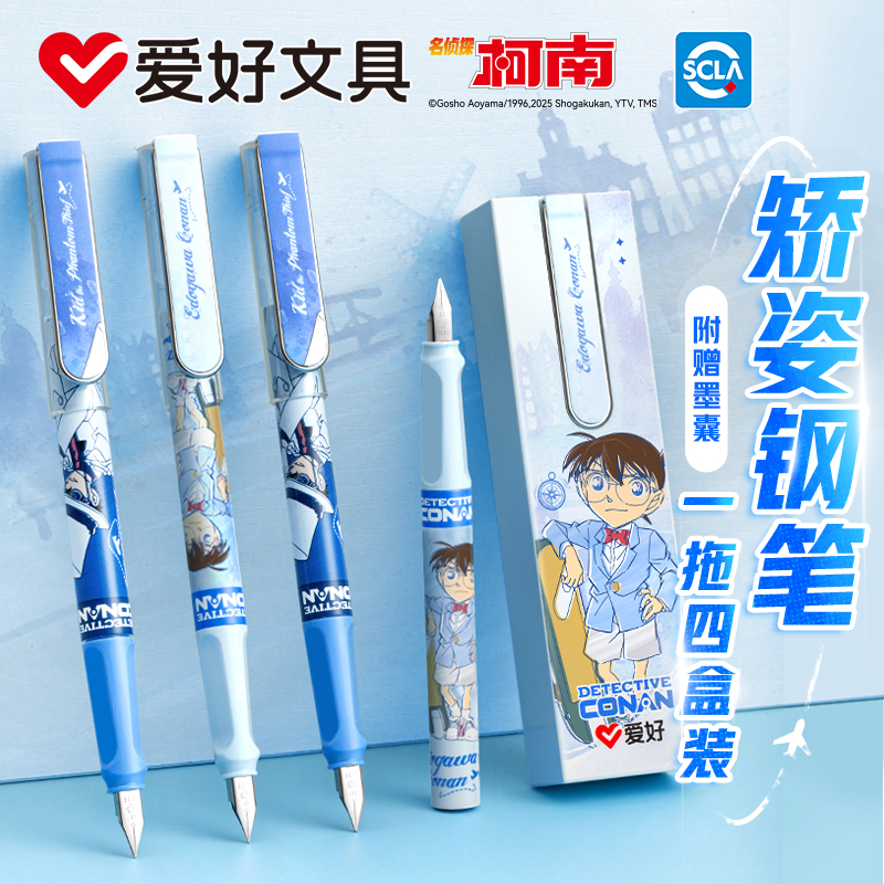 爱好名侦探柯南联名款可擦钢笔套装小学生用三五年级正姿练字书法可换墨囊墨胆墨水初学者儿童男女孩动漫钢笔