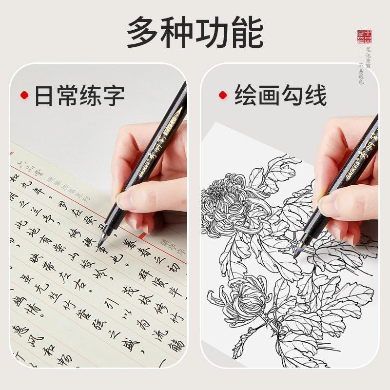 六品堂秀丽笔软笔书法练字钢笔式毛笔小楷签名笔可加墨签字小学生成人初学者字帖专用硬笔大楷中楷绘画手绘笔