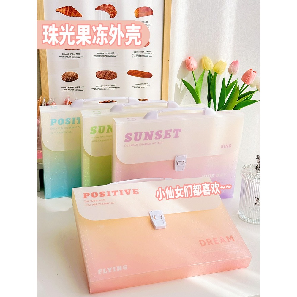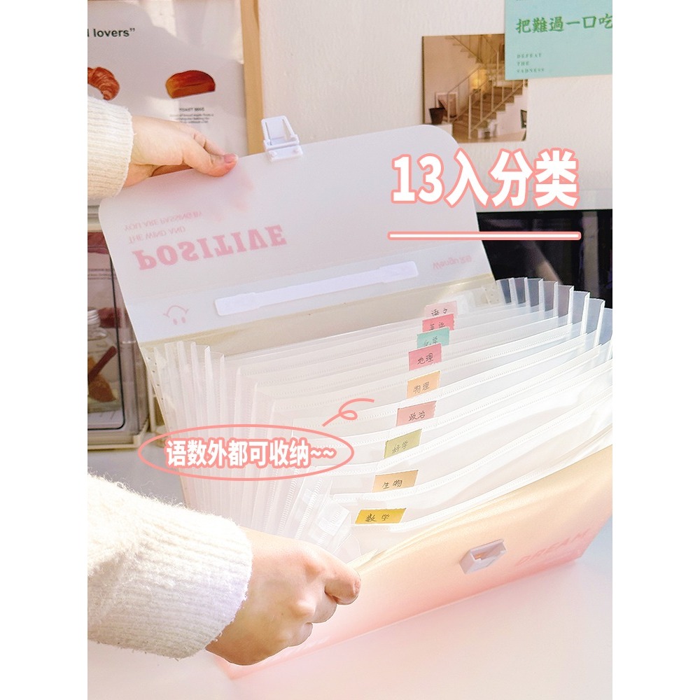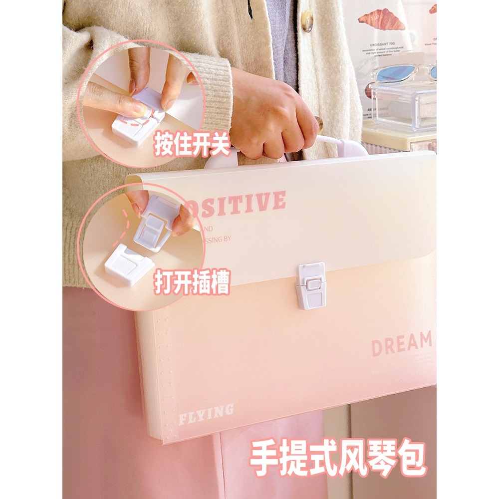 文谷12入a4渐变色风琴包学生大容量小清新可爱手提手风琴文件夹试