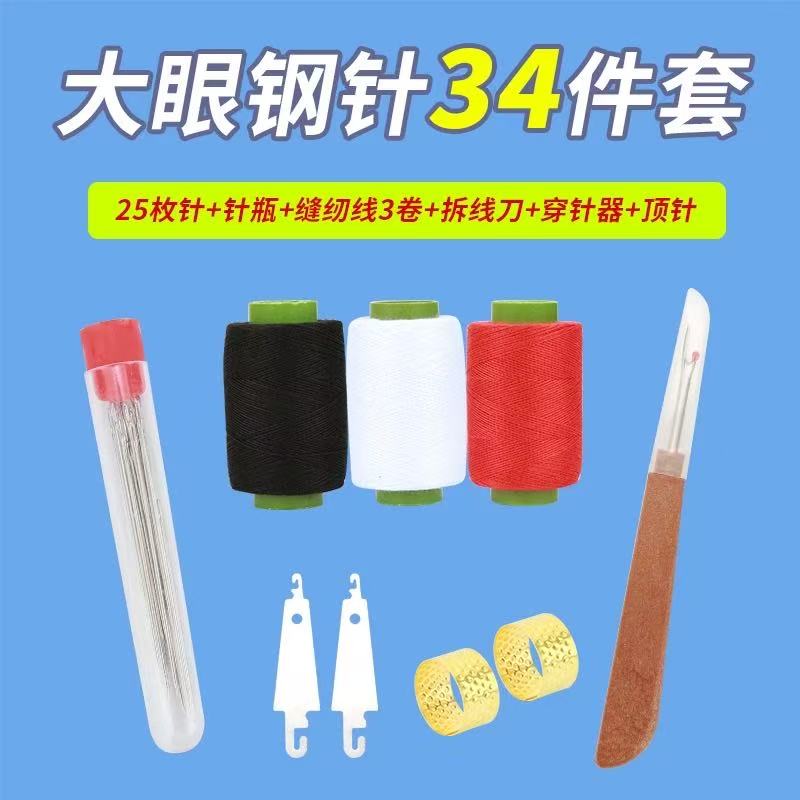 34件套大鼻子缝针钢针缝纫工具套装被子老人穿针家用大眼手缝神器