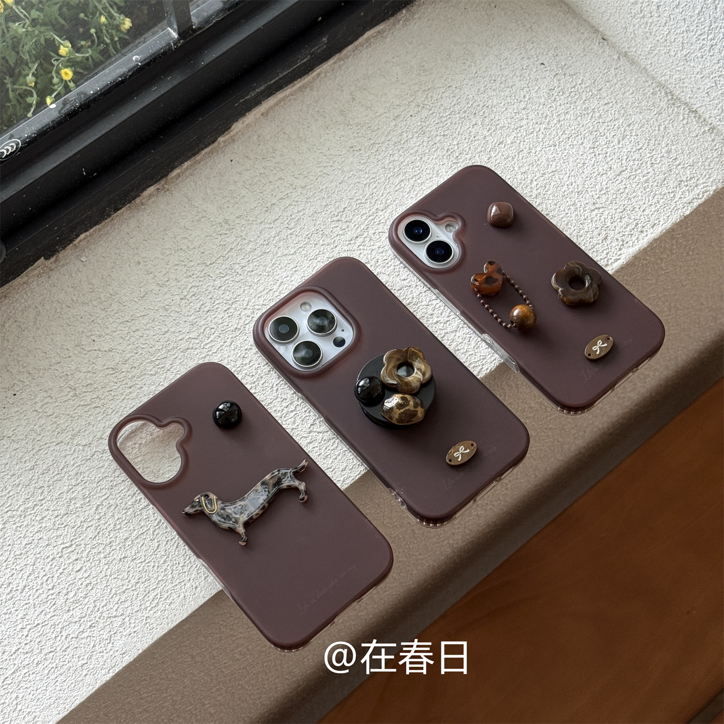 在春日小众高级感秋冬棕色系手机壳适用于苹果17promax/14新款iPhone15pro女15保护壳16promax/16双层印花