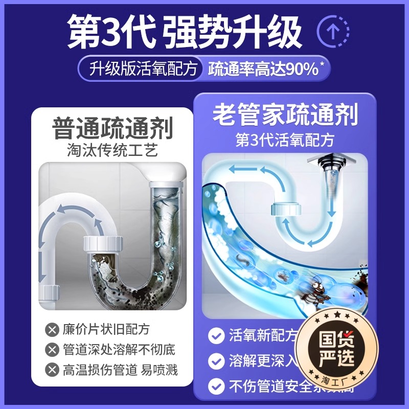 老管家管道疏通剂强力溶解油污厨房马桶除臭厕所堵塞通下水道神器