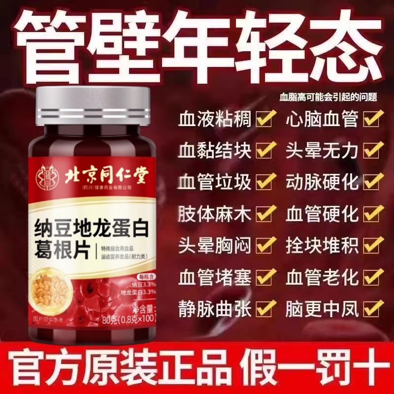 北京纳豆红曲地龙蛋白葛根片中老年疏通软化堵塞血管正品白老年人
