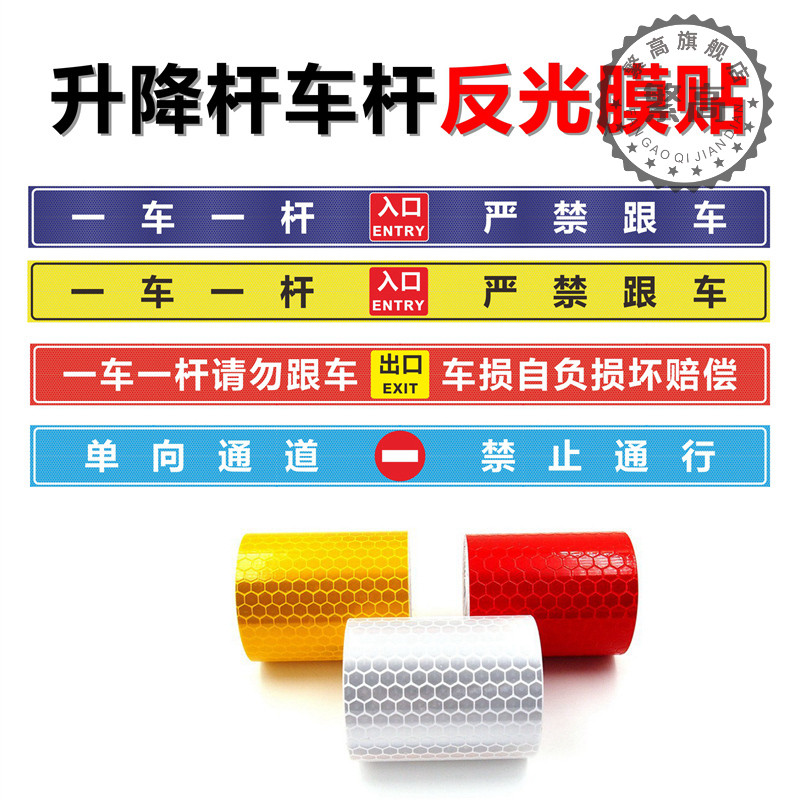 一车一杆标识牌道闸杆标志牌请勿跟车提示贴大门进出入口车辆减速慢行指示牌反光贴膜警示贴杆子停车场贴纸