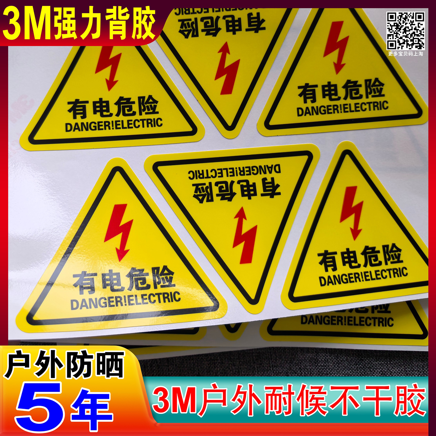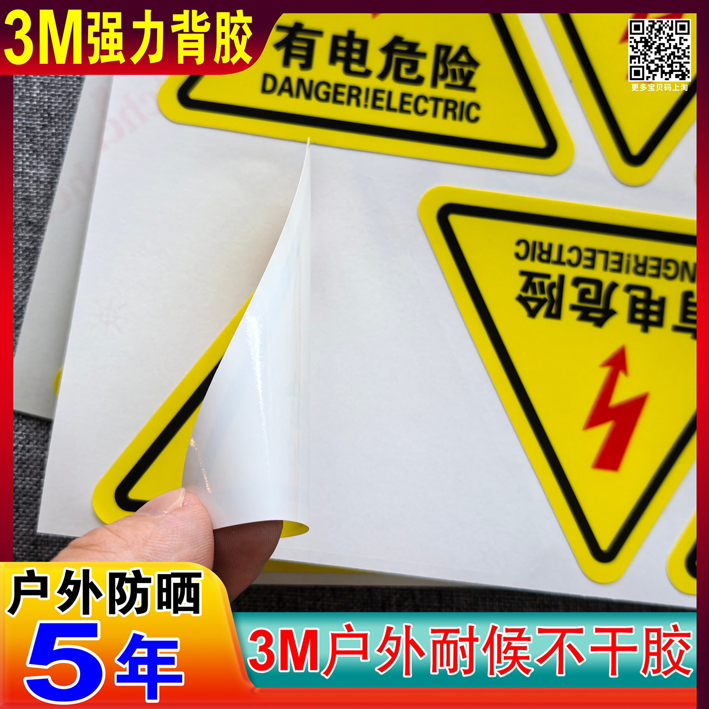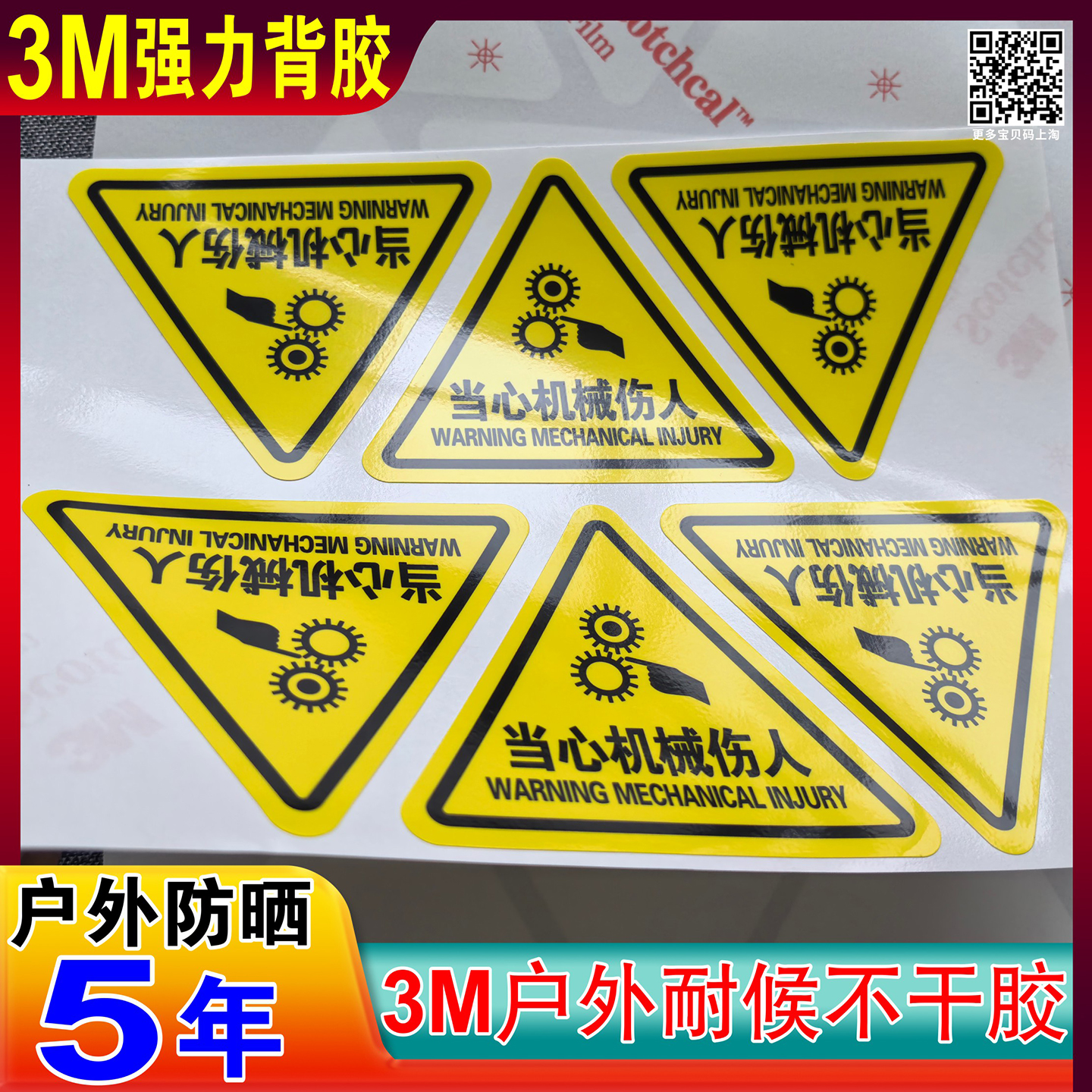 3M户外耐候不干胶防晒5年贴纸定制3M品牌材料标签机械设备安全标贴磨砂塑片CRAA标签有电危险警示贴当心机械