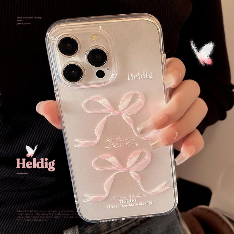 甜美粉色蝴蝶结透明iPhone手机壳适X/11/12/13/14/15/16pro max