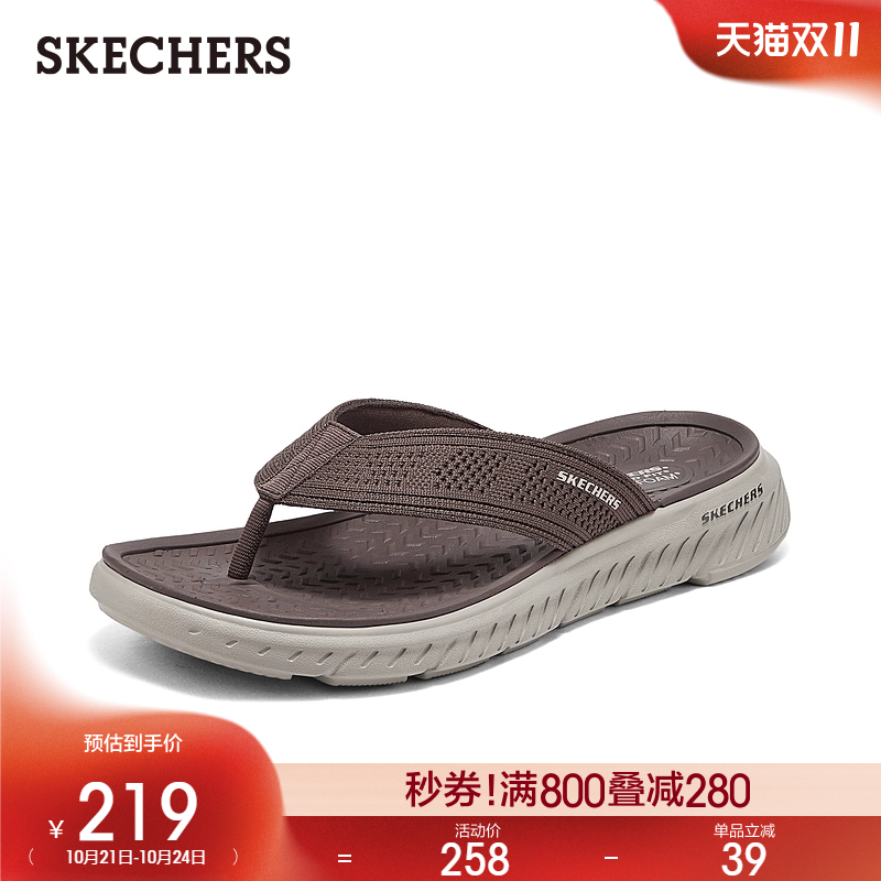 Skechers斯凯奇男鞋2025夏季新款一脚蹬休闲拖鞋舒适外穿人字拖