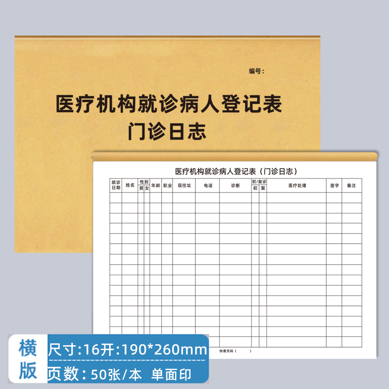 医疗机构就诊病人登记本门诊工作日志中医门诊登记本手术室记录本急救药品物品检查记录本报损过期药品记录