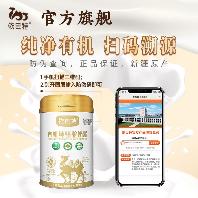 依巴特有机纯骆驼奶新疆驼奶粉成人中老年人有机全脂纯驼奶礼盒装