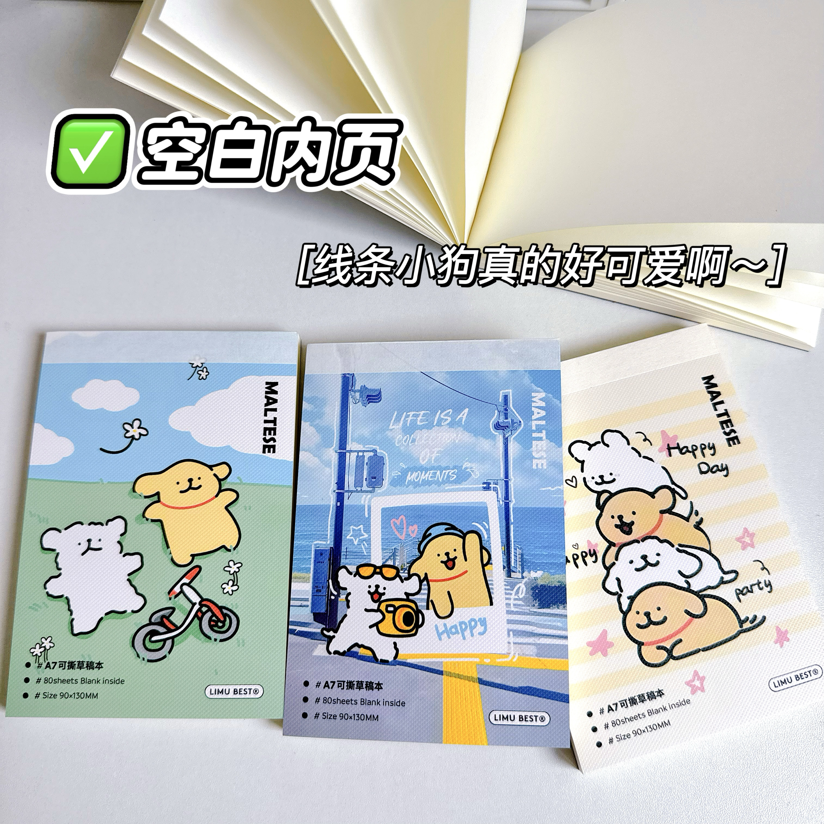 线条小狗A7可撕草稿本学生可爱高颜值空白本便签本单词笔记本子