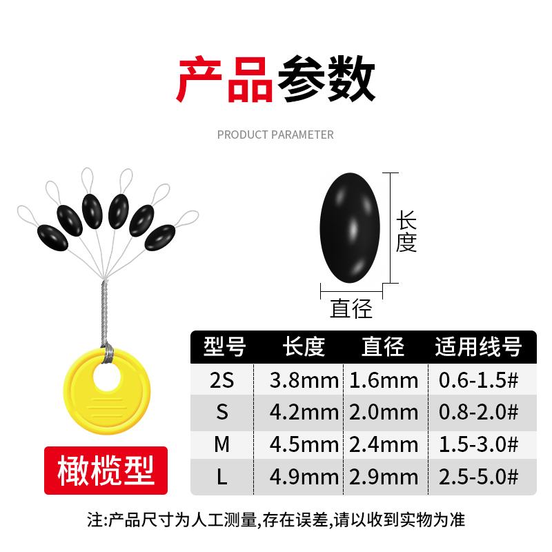 钓鱼超紧硅胶太空豆特级优质橡胶100组橄榄形型散装小号渔具配件