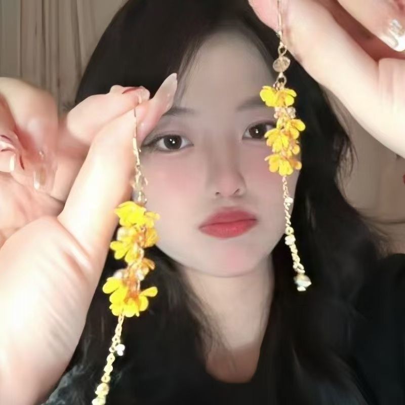 【蜜桃茶】夏日蓝色花朵流苏耳环2025新款绝美夸张海边度假风耳饰