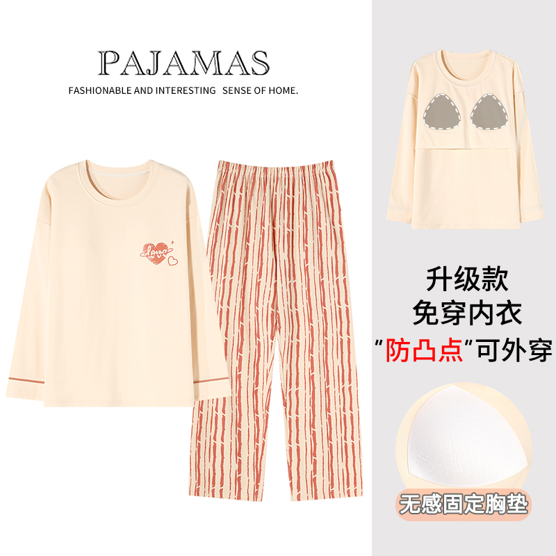 百分百纯棉自带胸垫睡衣女春秋款长袖2025新款女士休闲抗菌家居服