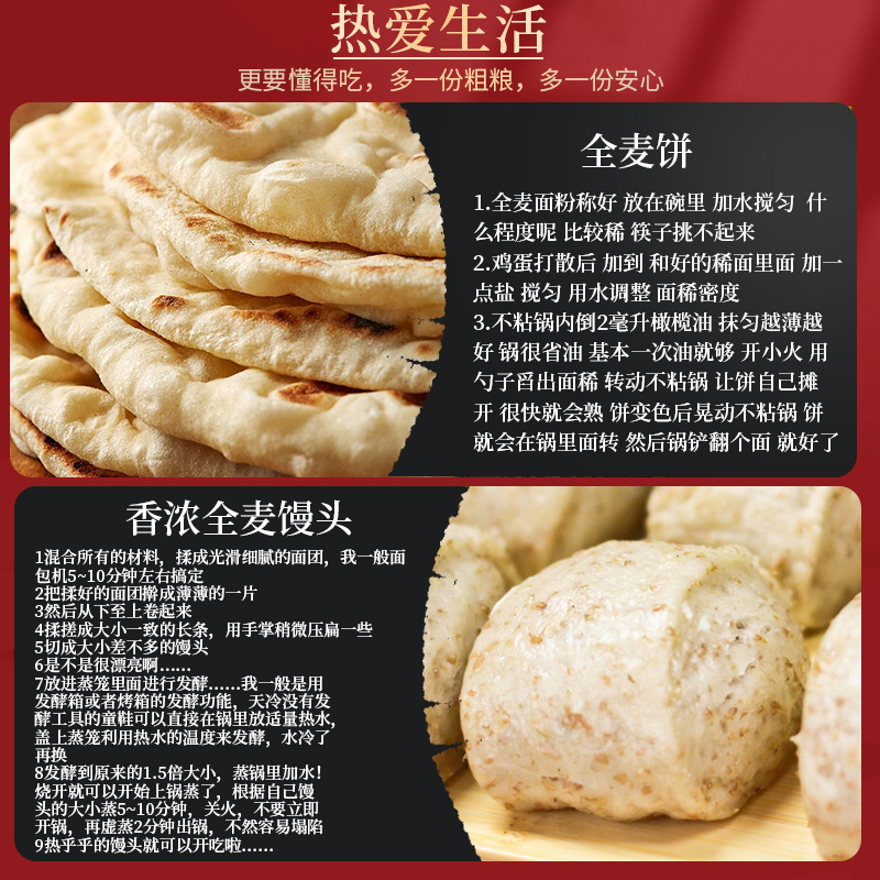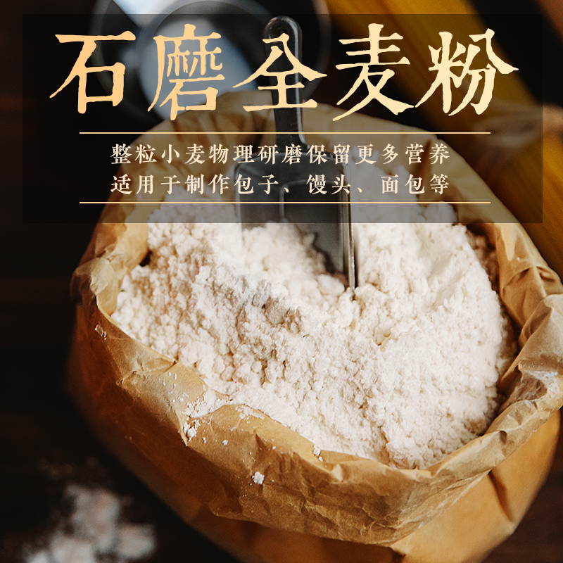 5斤纯全麦面粉全麦粉含麸皮家用面包粉小麦低筋石磨粗粮麦麸发酵