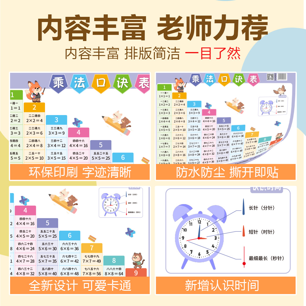 儿童乘法口诀表墙贴小学生一二年级99九九乘除法数学公式挂图神器