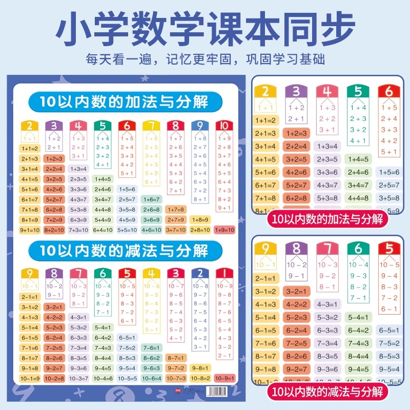 儿童10 20以内的加法加减法口诀表挂图一年级二十数学分解与组成
