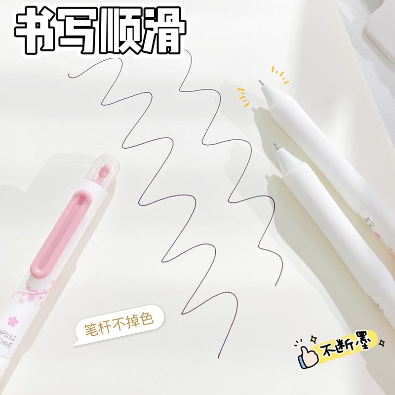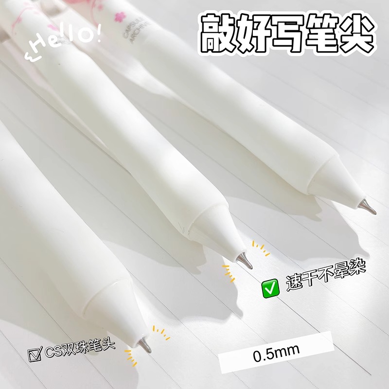 东米DM-637次时空胶囊按动笔ins高颜值学生刷题笔速干顺滑双珠CS头0.5黑笔碳素水笔按压黑色圆珠笔软握考试用
